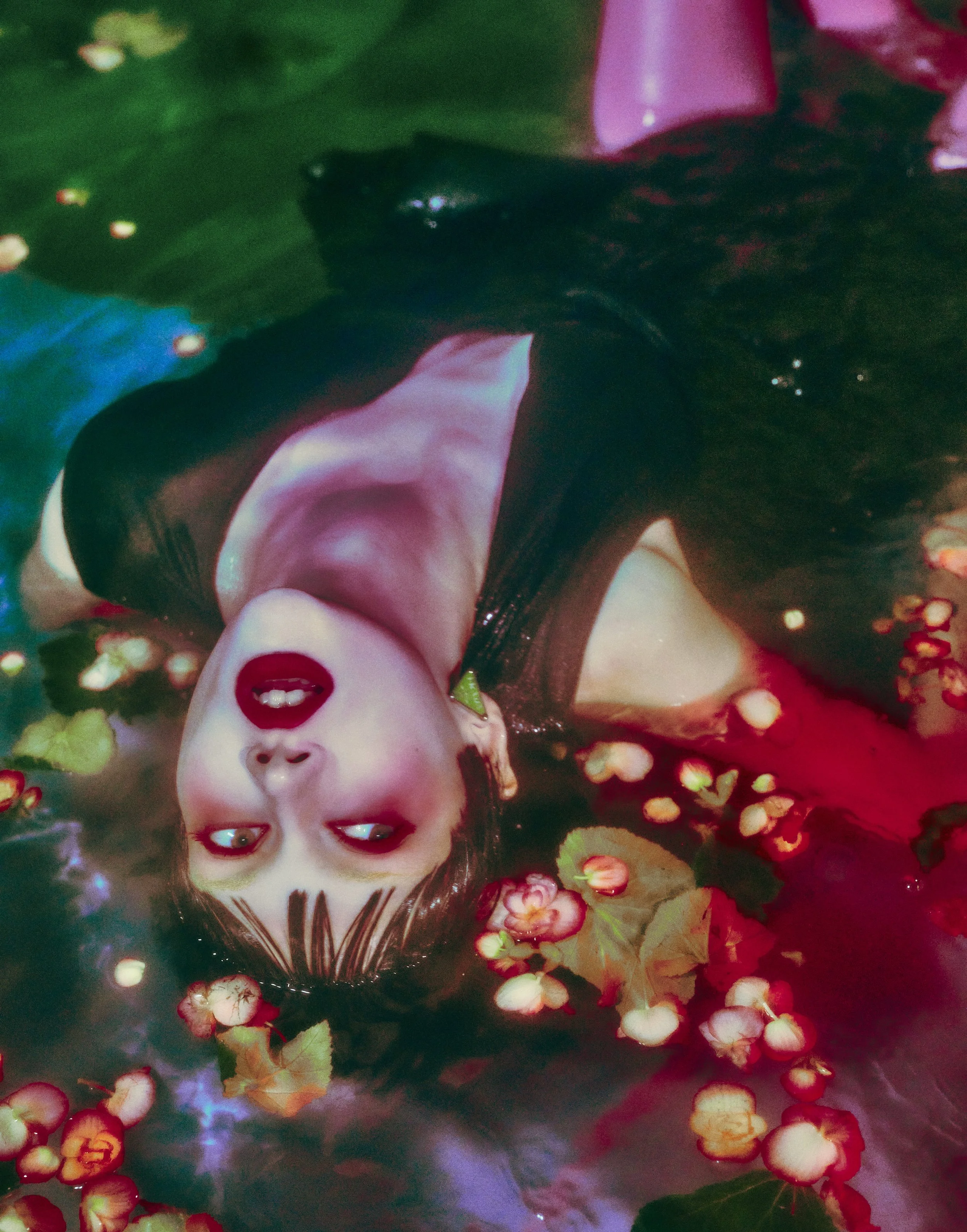 <Discharge>를 시작으로 <Babe> <Coming of Age> <Baron by Petra Collins> <OMG I’m Being Killed> <Fairy Tales>까지 꾸준히 사진집을 내고 있다. 책 제목을 하나씩 읊어보면 연대기처럼 보이기도 한다. 침대 위의 소녀가 포스터 가득한 방에서 나와 세상을 탐험하는 느낌이랄까. 외계인이 되기도 하고 인어가 되기도 하고 진화하는 하나의 생명체 같다. 당신의 내적 변화와 관련이 있나?